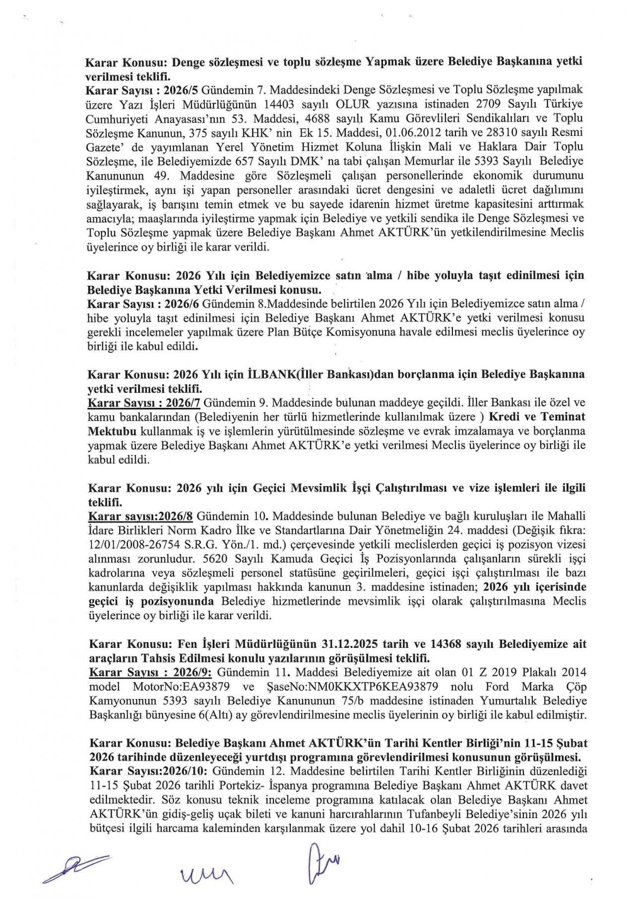 2026 Ocak Meclis Kararı