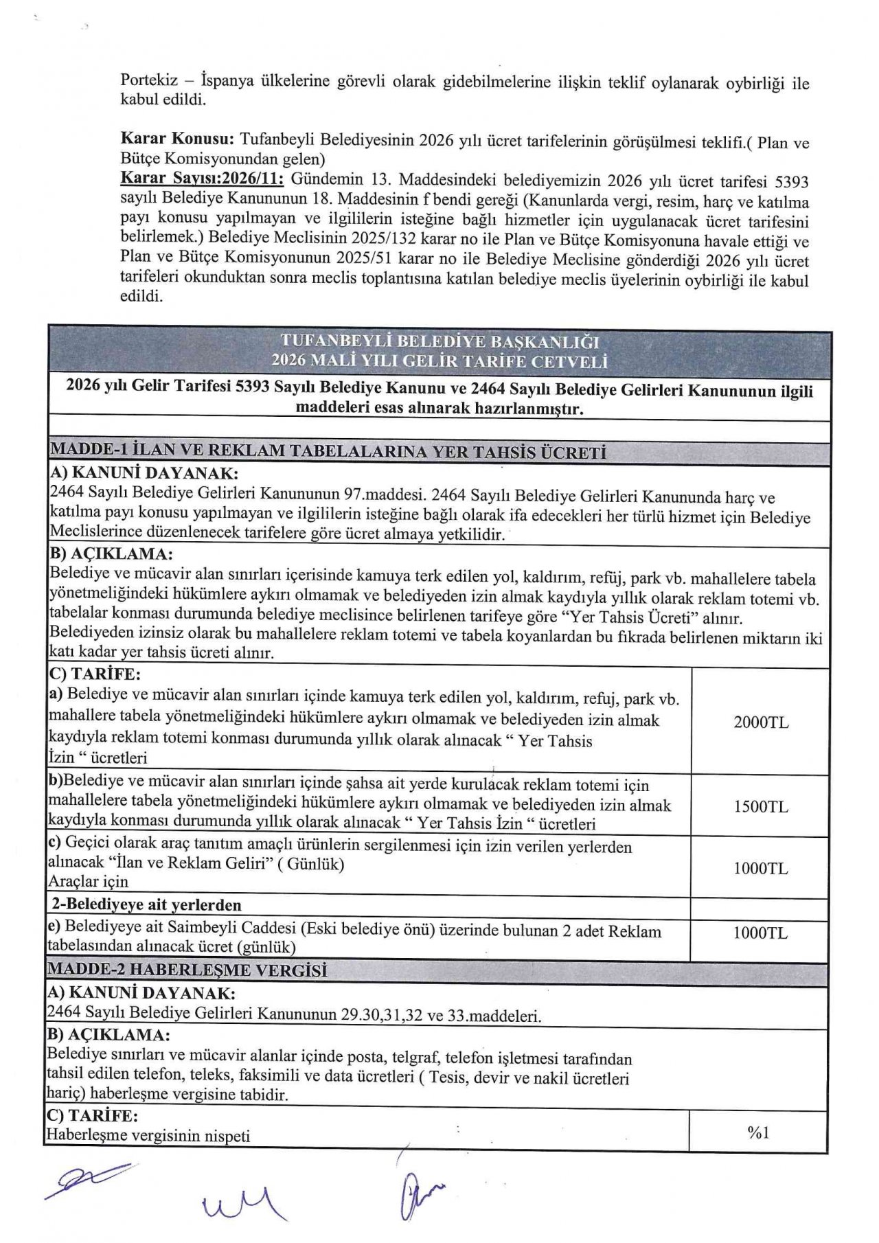 2026 Yılı Meclis Kararları